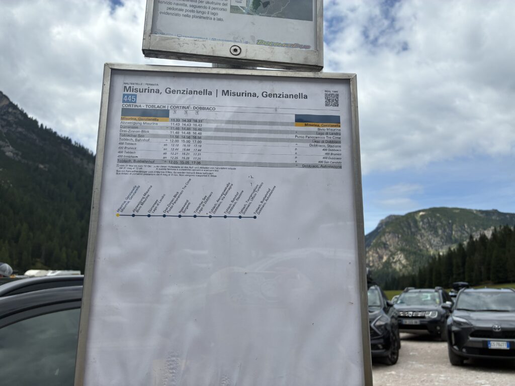 コルティナからミズリーナ湖行きのバスに乗り、その後シャトルバスに乗り換える必要があります。